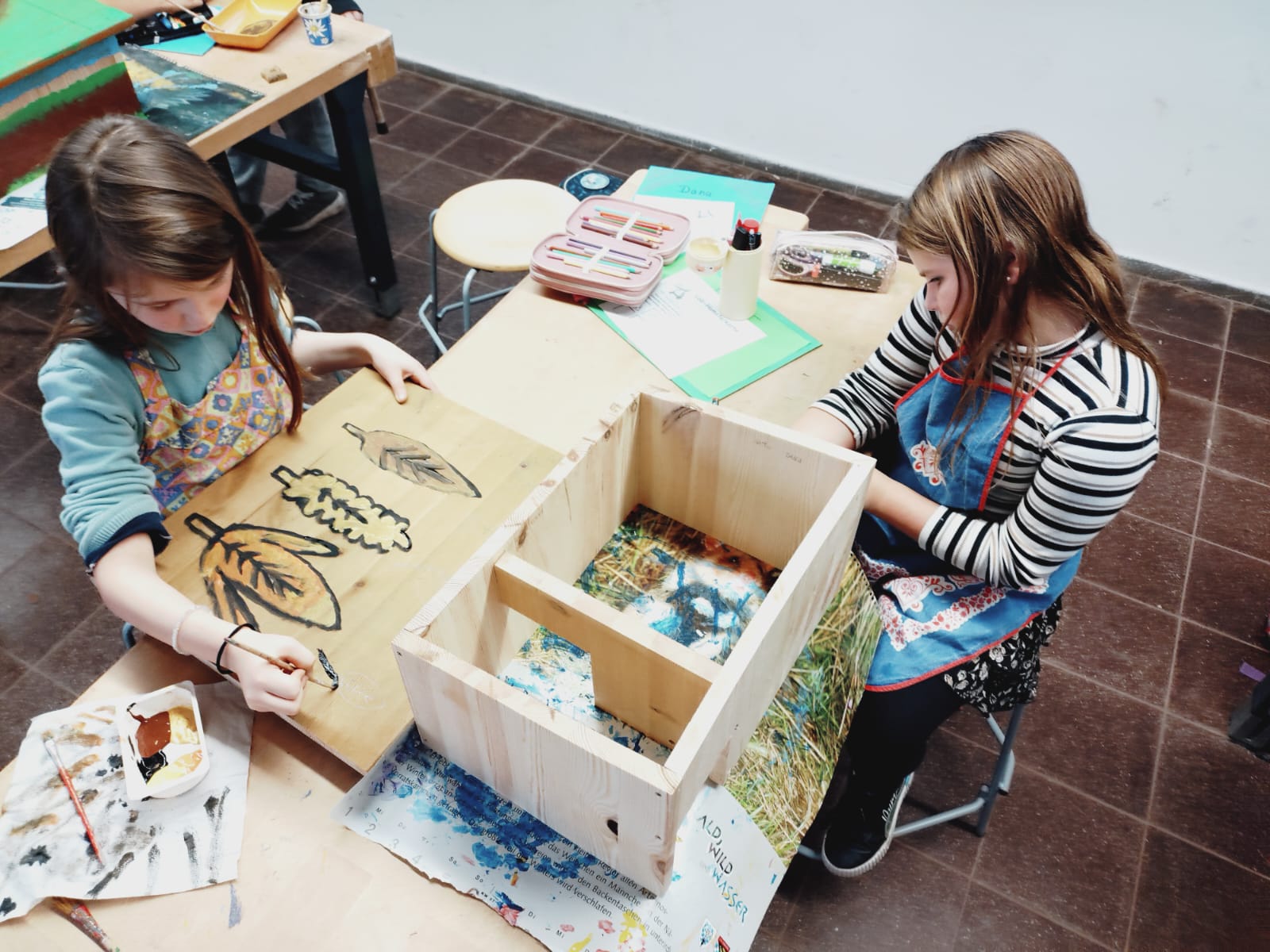Gearbeitet wurde in Zweiergruppen, sodass immer zwei Kinder gemeinsam ein Igelhaus gebaut haben. Nach dem Ausschneiden der Eingänge konnten die Häuser zusammengeschraubt werden. Sobald der Rohbau fertig war, begann die kreative Phase: Die Kinder durften ihre Igelhäuser frei nach ihren eigenen Vorstellungen verzieren und gestalten. Dabei entstanden viele individuelle und liebevoll gestaltete Unikate.